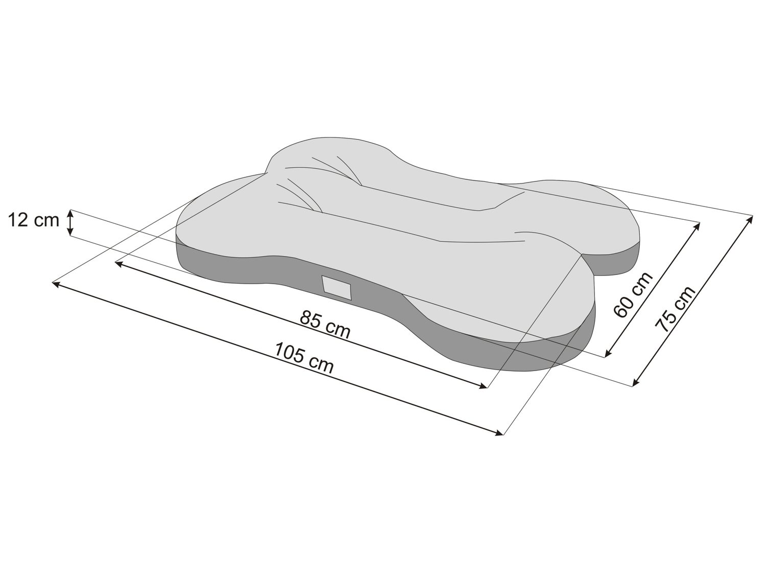 Dimensions: Length 105 x Width 75 cm, Thickness 12 cm, Weight 2.6 kg