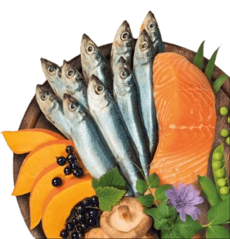 FISH MEAT is a source of complete protein, fat with high biological value, vitamins A, D, and B, and minerals; in addition to phosphorus, fluorine, and sodium, it is especially iodine, which is necessary for proper thyroid function.