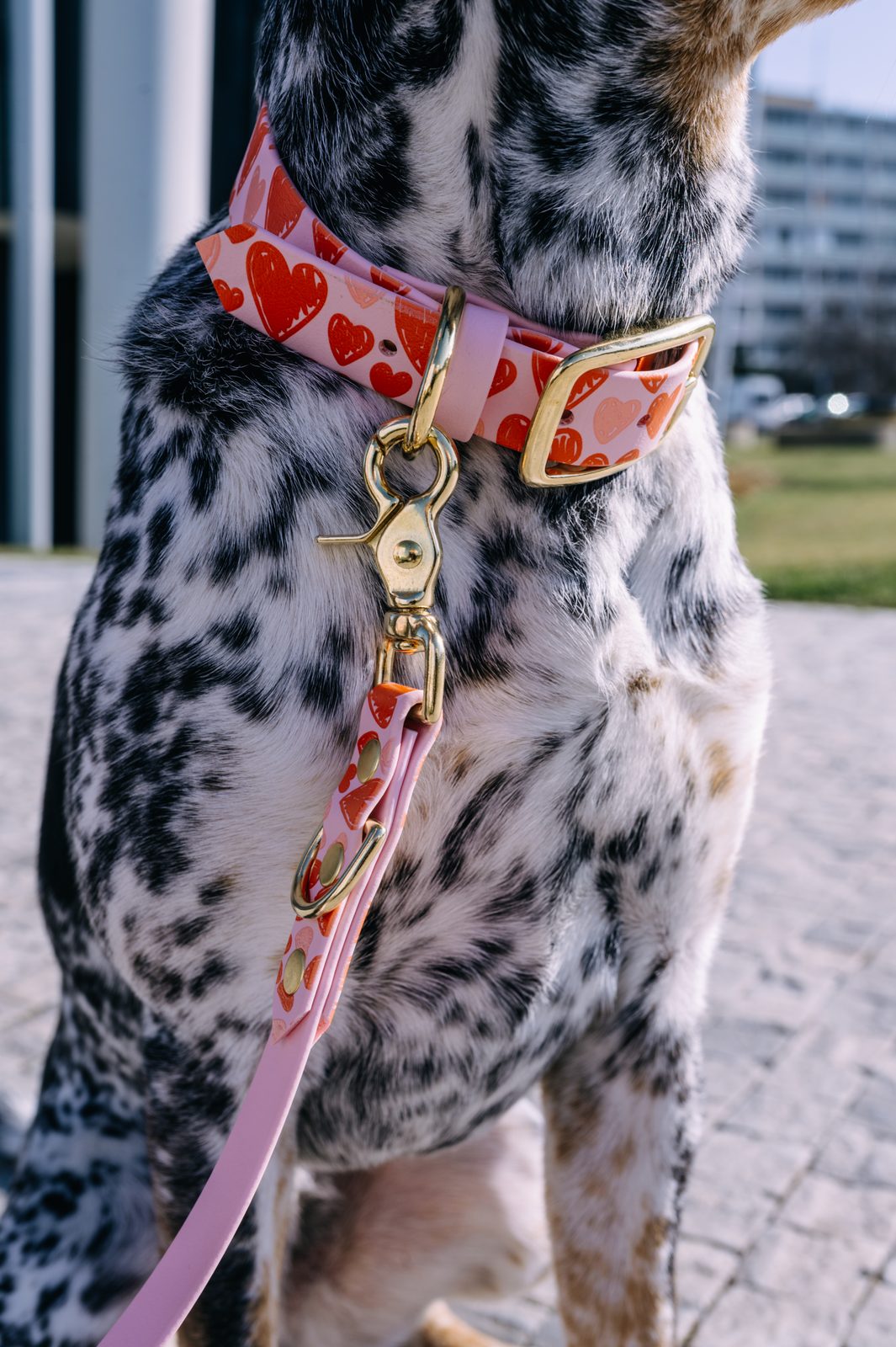 Thanks to the hands-free lead function, you can enjoy freedom of movement with your dog by your side, while the cute heart pattern adds a touch of love and elegance to your shared moments. The set also includes a collar that combines a gentle design with extreme durability. Quality hardware combined with BioThane® material is a bet on quality, comfort and functionality.